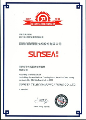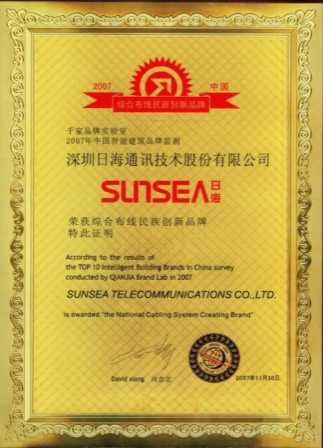 2007年11月29日~30日,350vip浦京集团公司智能综合布线受邀前往上海光大会展中心酒店,参加由千家网筹办的“2007年第八届中国国际建筑智能化峰会暨颁奖典礼”,获得了“布线民族创新品牌”特别奖项。